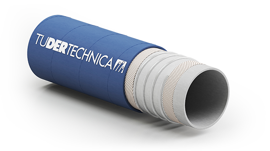 Saug- und Druckschlauch für fetthaltige und nicht fetthaltige Lebensmittel. Überfahrbar. Geprüft nach den wichtigsten Normen für Lebensmittelkontaktmaterialien (FCM – Reg. (CE) 1935/2004). Gemäß den GMP (Reg. (CE) 2023/2006) Vorschriften hergestellt.